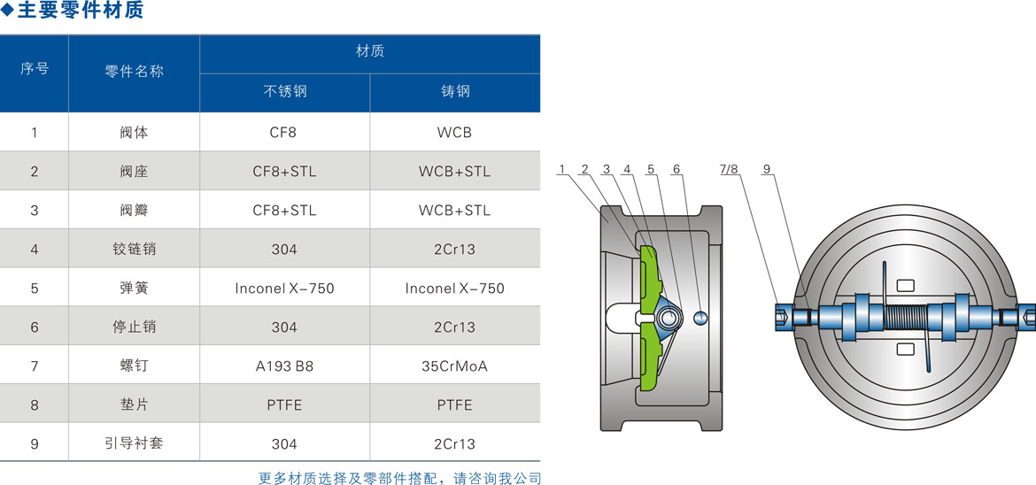 ④主體材料、內件材料、墊片、緊固件的材料可根據用戶要求或實際工況條件合理組合