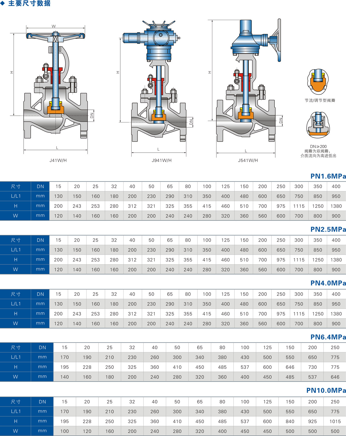 ①閥體和閥蓋連接形式:PN10~ PN100采用栓接閥蓋;PN160及以上采用自壓密封式閥蓋。