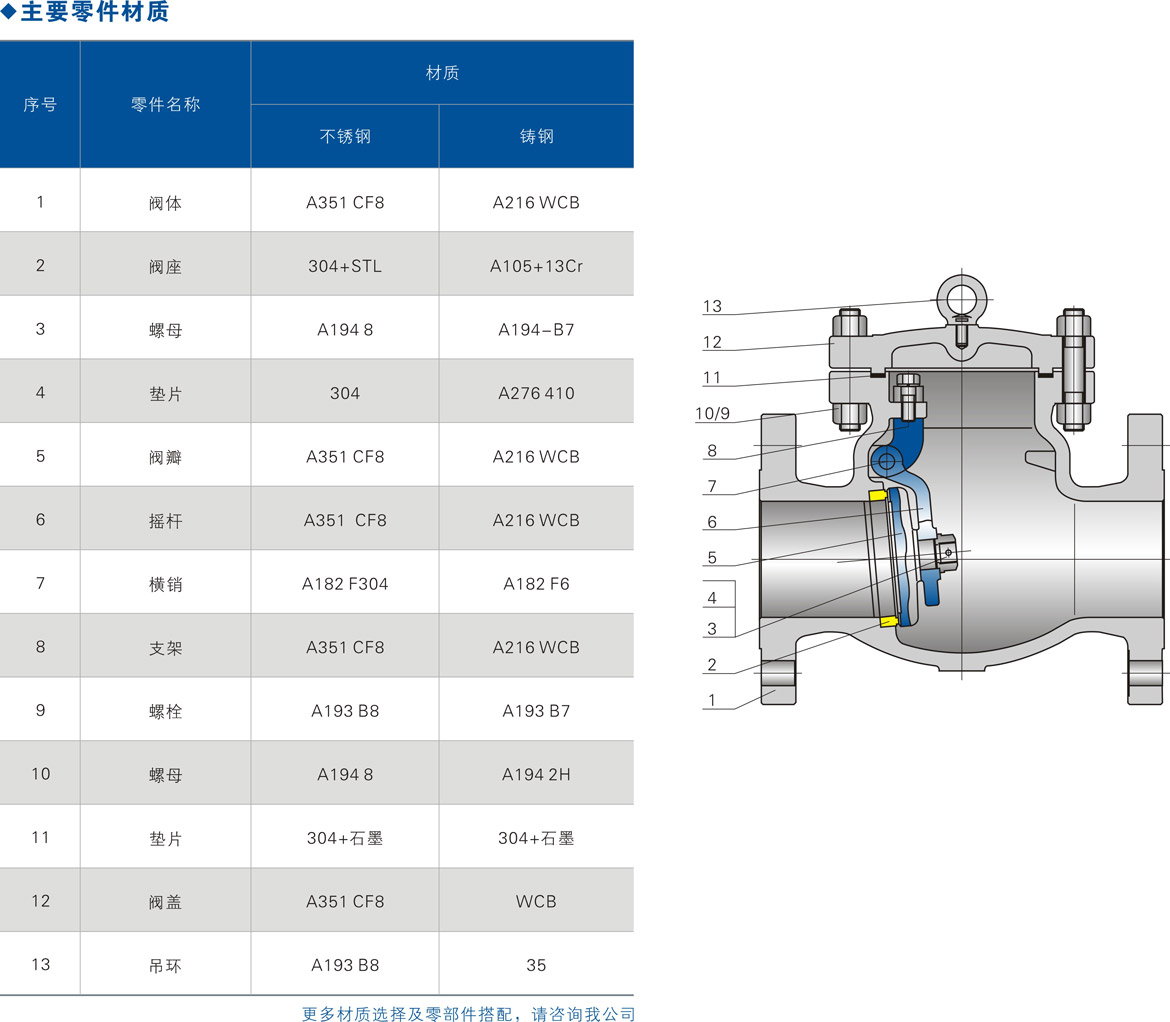②旋啟式止回閥屬于自動閥類,主要用于介質單向流動的管道上,只允許水平安裝。