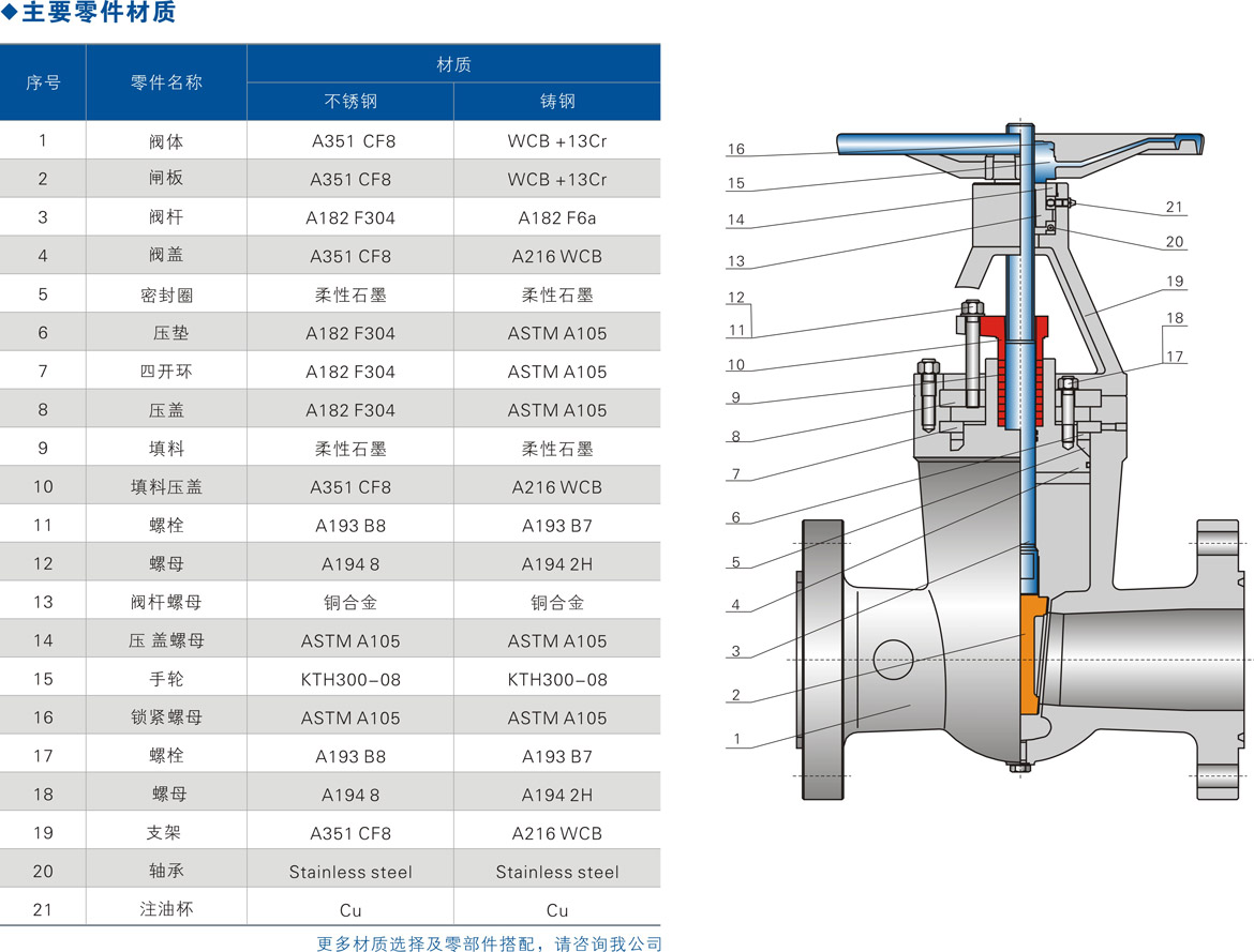 ⑥主體材料、內件材料、填料、墊片、緊固件的材料可根據用戶要求或實際工況條件合理組合。