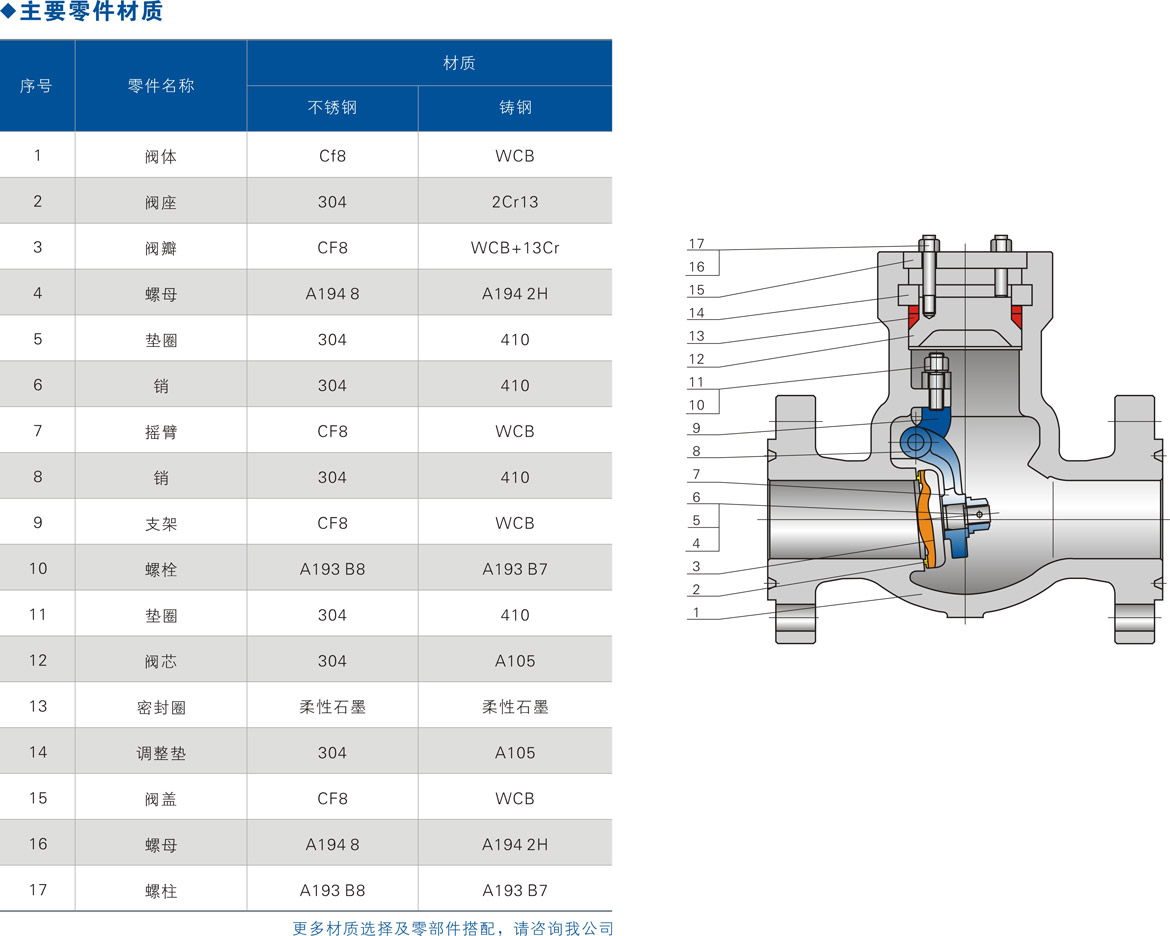 ②旋啟式止回閥又稱旋啟式單向閥或旋啟式逆止閥,啟閉件靠介質流動和重力自行開啟或關閉,其作用是防止管路中的介質倒流。